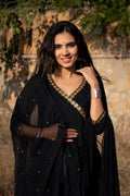 Mystic Black Angarkha Type Anarkali Suit Set with Dupatta