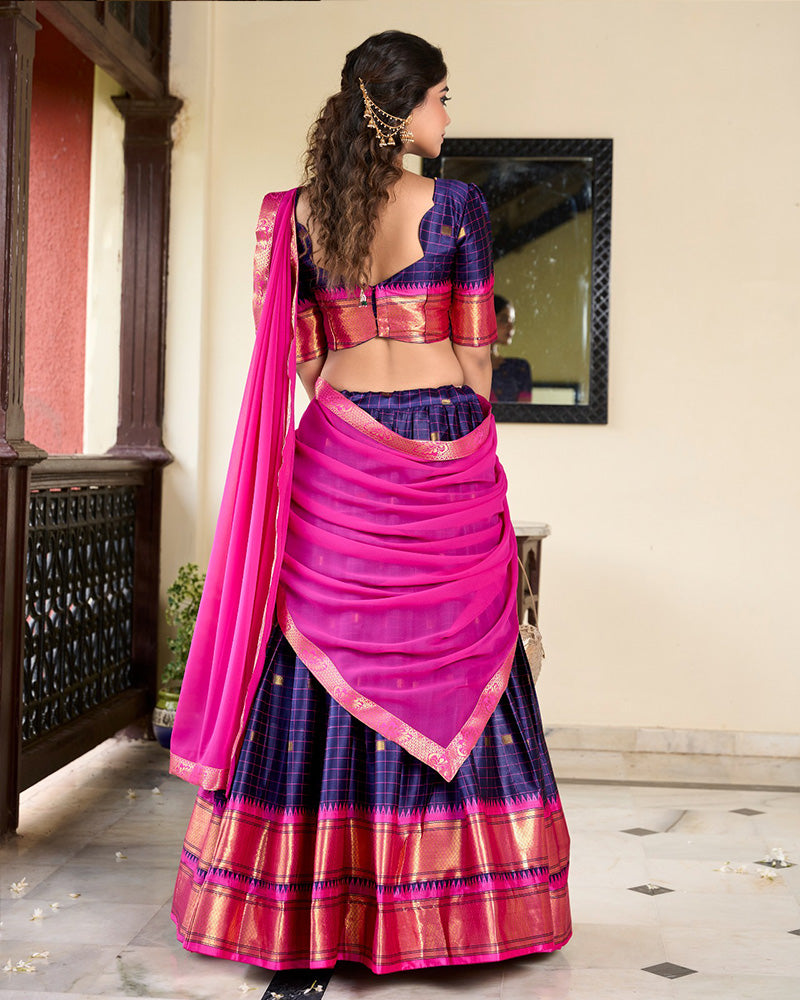 Navy Blue Color Cotton Silk Designer Lehenga Choli