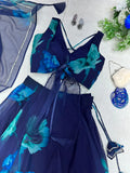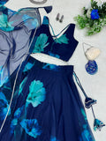 Navy Blue Color With Flower Digital Print Lehenga Choli