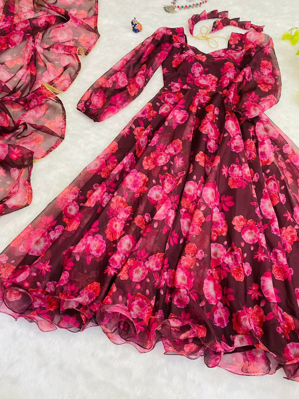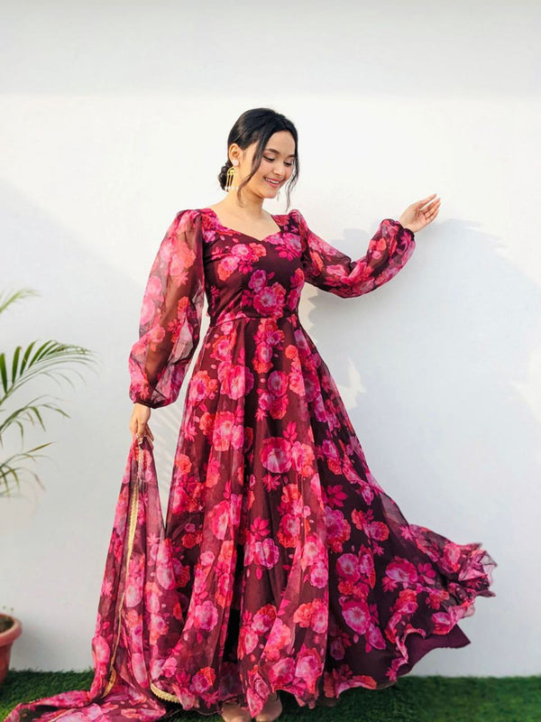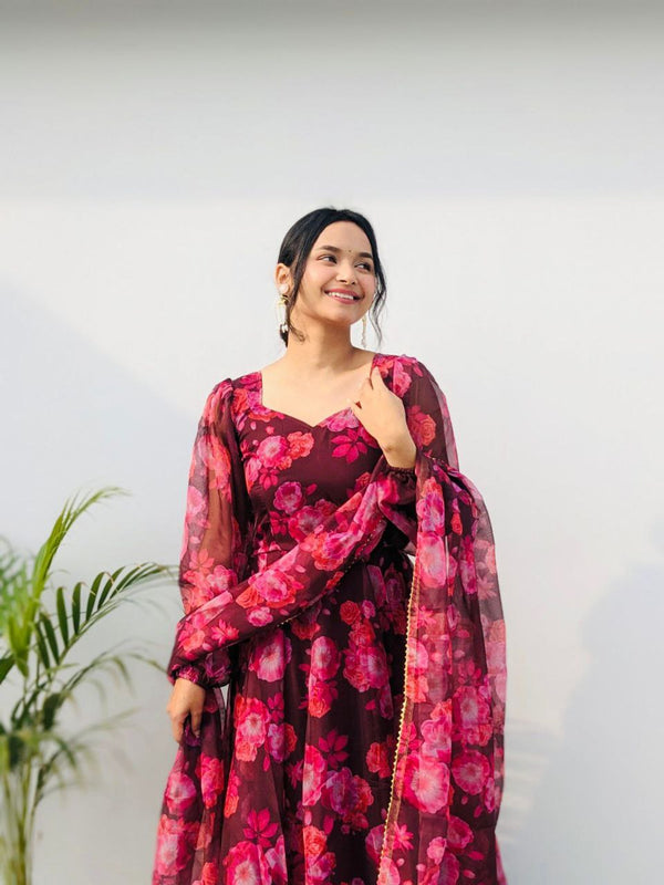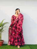 Stylish Readymade Georgette Long Anarkali Gown With Lace Border Dupatta