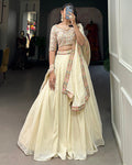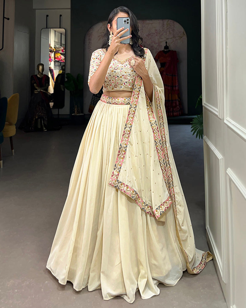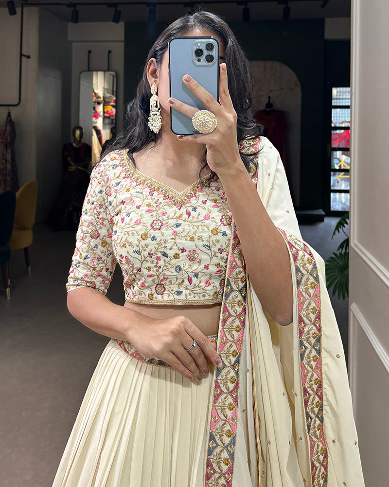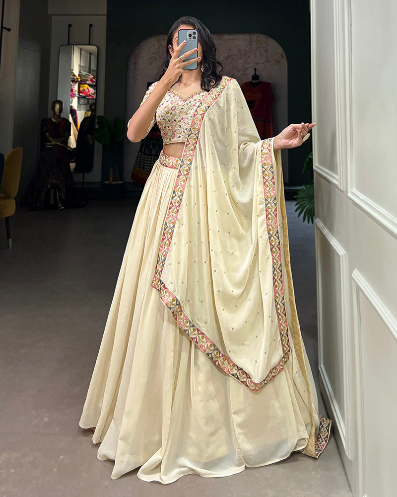 Off-White Color Georgette Thread Embroidered Lehenga Choli