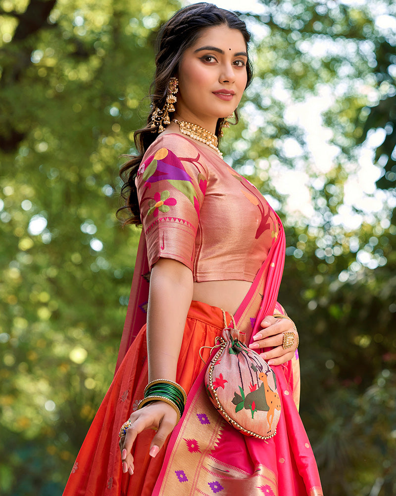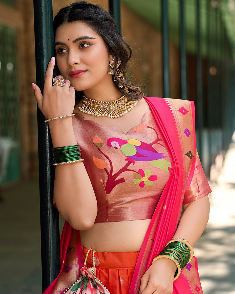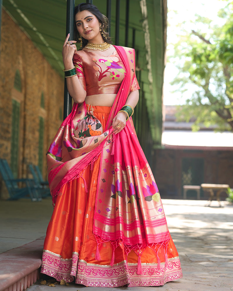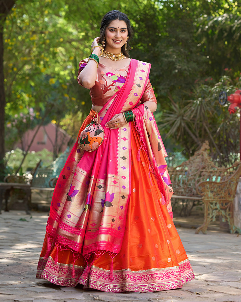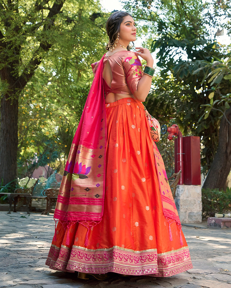 Orange Color Jacquard Silk Lehenga Choli