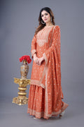 Orange Kurta Sharara In Chinon With Sequence Embroidery And Dupatta Big Flair Sharara