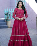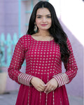Drape yourself in the enchanting allure of our Pink Color Designer Zari Embroidered Work Anarkali Gown. The soft pink hue serves as the perfect backdrop for intricate zari embroidery, creating a symphony of elegance and sophistication. The Anarkali silhouette adds a timeless charm, with the gown gracefully cascading to the floor. Elaborate zari work embellishes the neckline and sleeves, bestowing a regal touch to the ensemble. Ideal for special occasions and celebratory events, this gown effortlessly marries traditional aesthetics with contemporary style. Step into the spotlight and captivate with the delicate beauty of pink and the exquisite craftsmanship of zari embroidery.