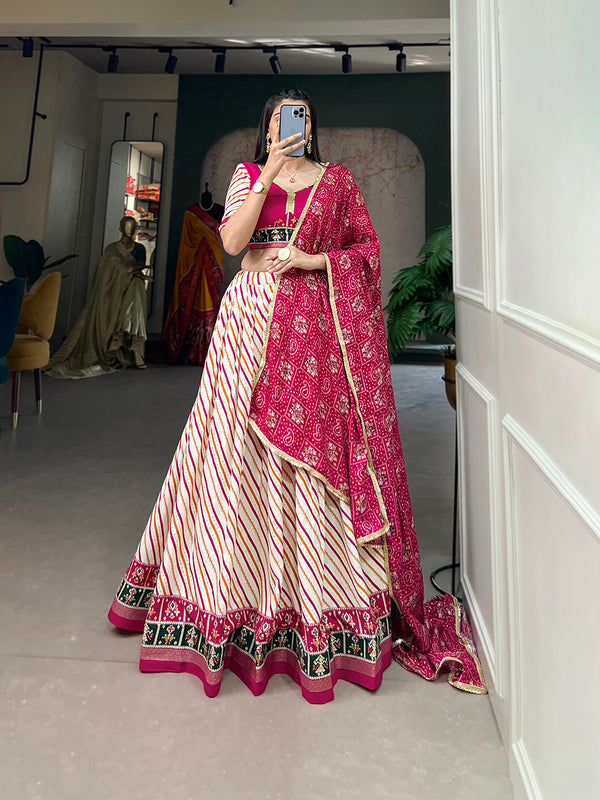 Pink Color Laheriya With Patola Print Cotton Lehenga Choli