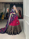 Pink Color Print With Foil Work Tussar Silk Lehenga Choli