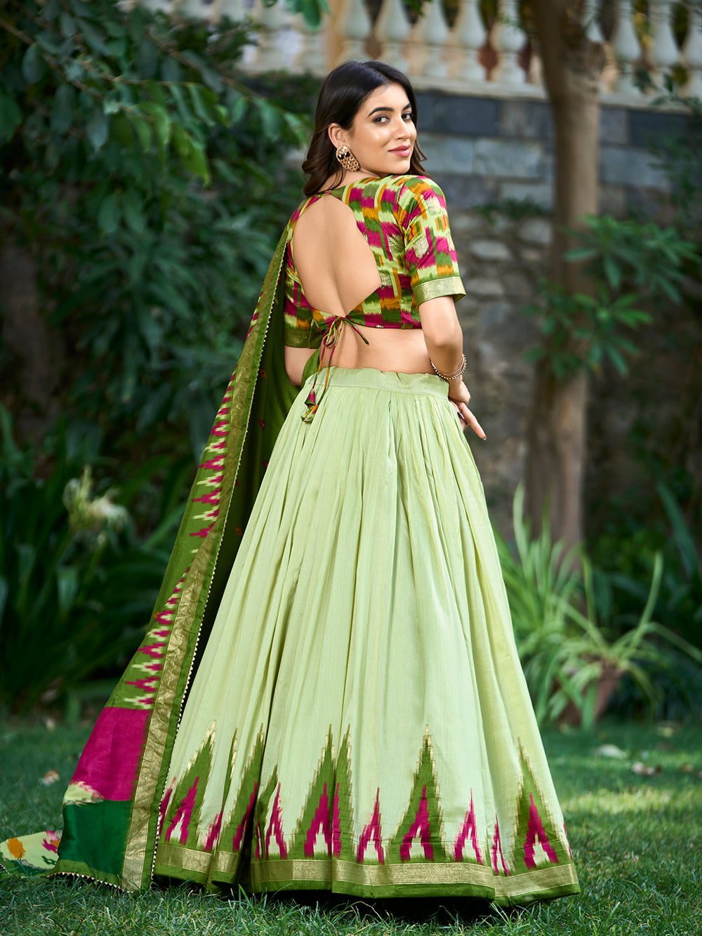 Pista Color Print With Foil Work Tussar Silk Lehenga Choli