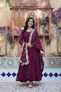 Plum Color Star Georgette Gown With Embroidered Dupatta