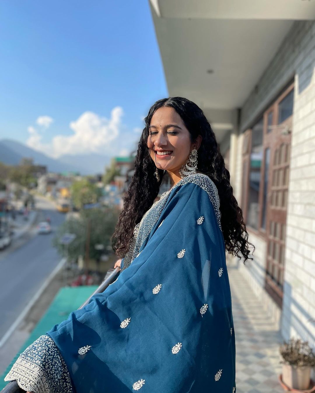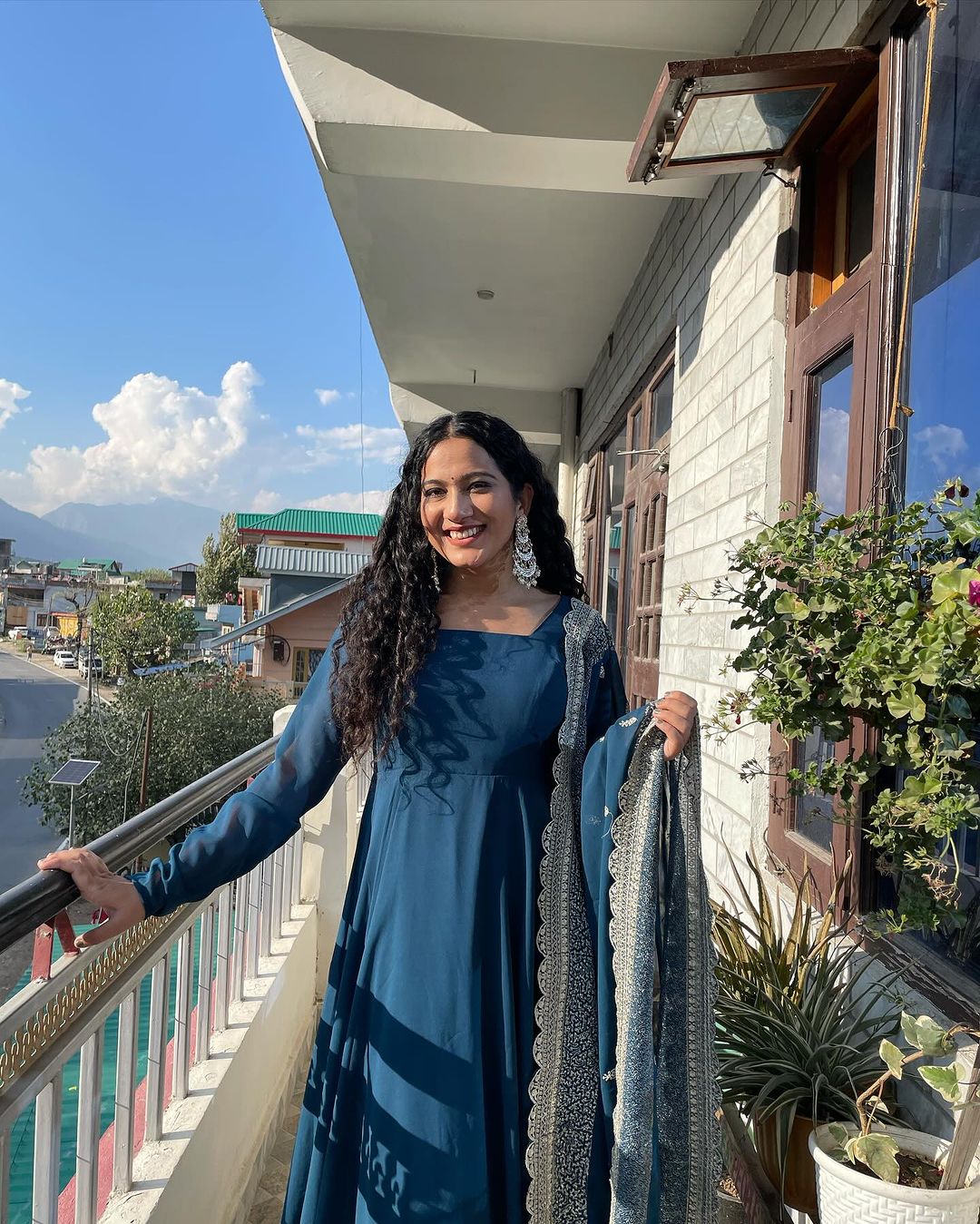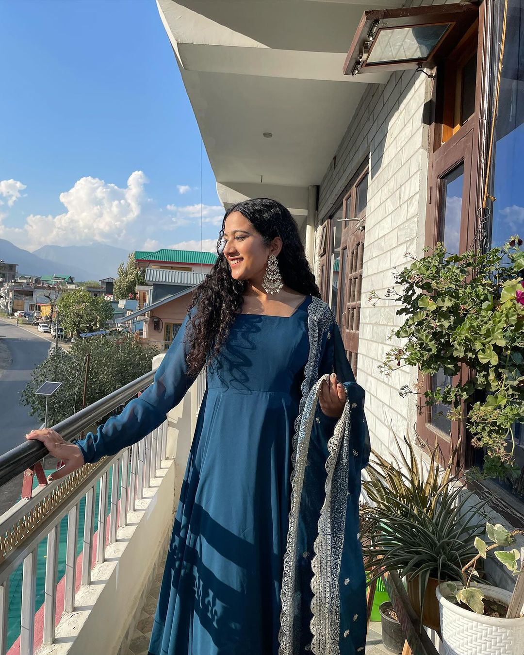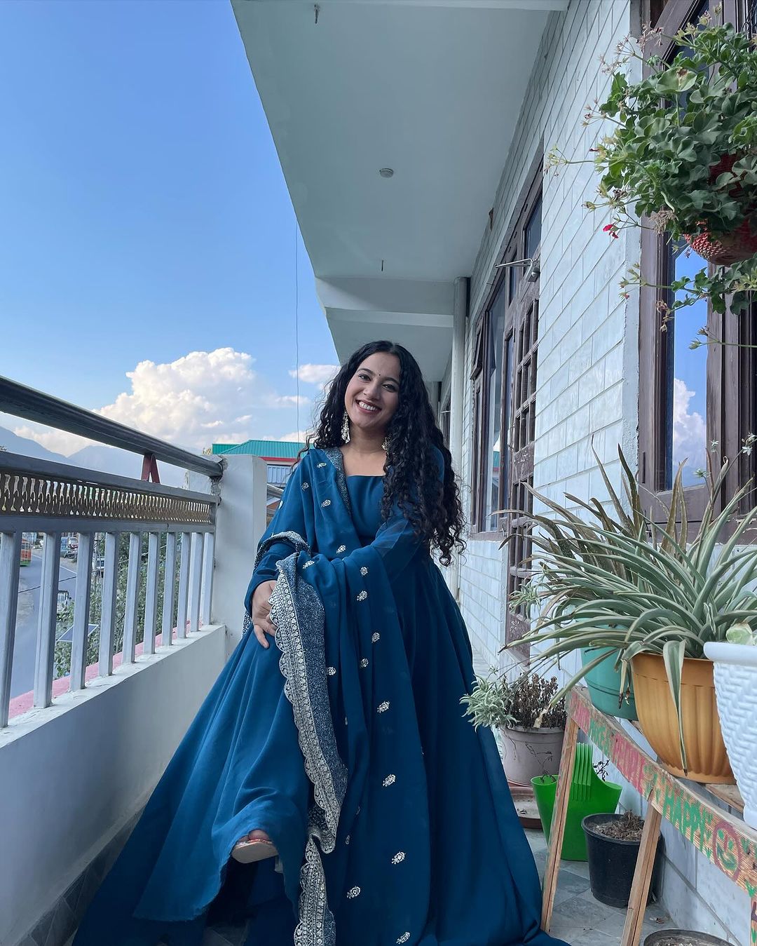 Priyanka Bhardwaj Rama Color Celebrity Anarkali Gown With Heavy Embroidered Dupatta
