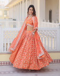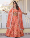 Radiate vibrancy in our Orange Pure Viscose Jacquard Semi-stitched Lehenga Choli—a celebration of bold hues and contemporary design. The pure viscose jacquard fabric brings a luxurious texture, while the vivacious orange color adds a burst of energy. The semi-stitched lehenga is adorned with intricate detailing, showcasing a perfect fusion of tradition and modernity. The ensemble allows for easy customization with its semi-stitched form, providing a tailored fit that suits your style. Ideal for festive occasions and celebrations, this orange lehenga choli promises to make a striking statement with its vibrant color and exquisite design. Step into the spotlight and embrace the allure of this semi-stitched ensemble, reflecting both elegance and contemporary flair.