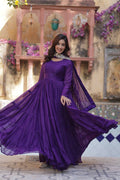 Purple Color Star Georgette Gown With Embroidered Dupatta