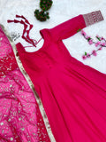 Rani Pink Color Soft Georgette Anarkali Gown With Heavy Embroidery Work Dupatta