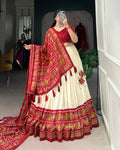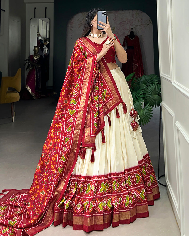 Red Color Tussar Silk Patola Printed Lehenga Choli