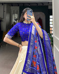 Royal Blue Color Tussar Silk Patola Printed Lehenga Choli