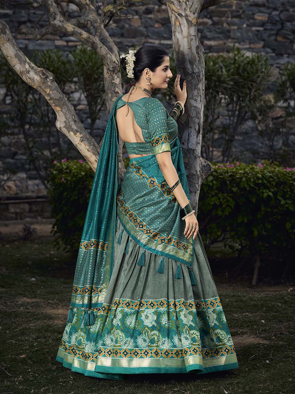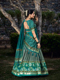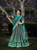 See Green Color Floral Print With Foil Print Tussar Silk Lehenga Choli