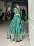 See Green Color Plain With Zari Weaving Work Border Chanderi Wedding Lehenga Choli