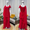 Shagun Red Party Wear Look Top Palazzo And Dupatta With Heavy Embroidery Work