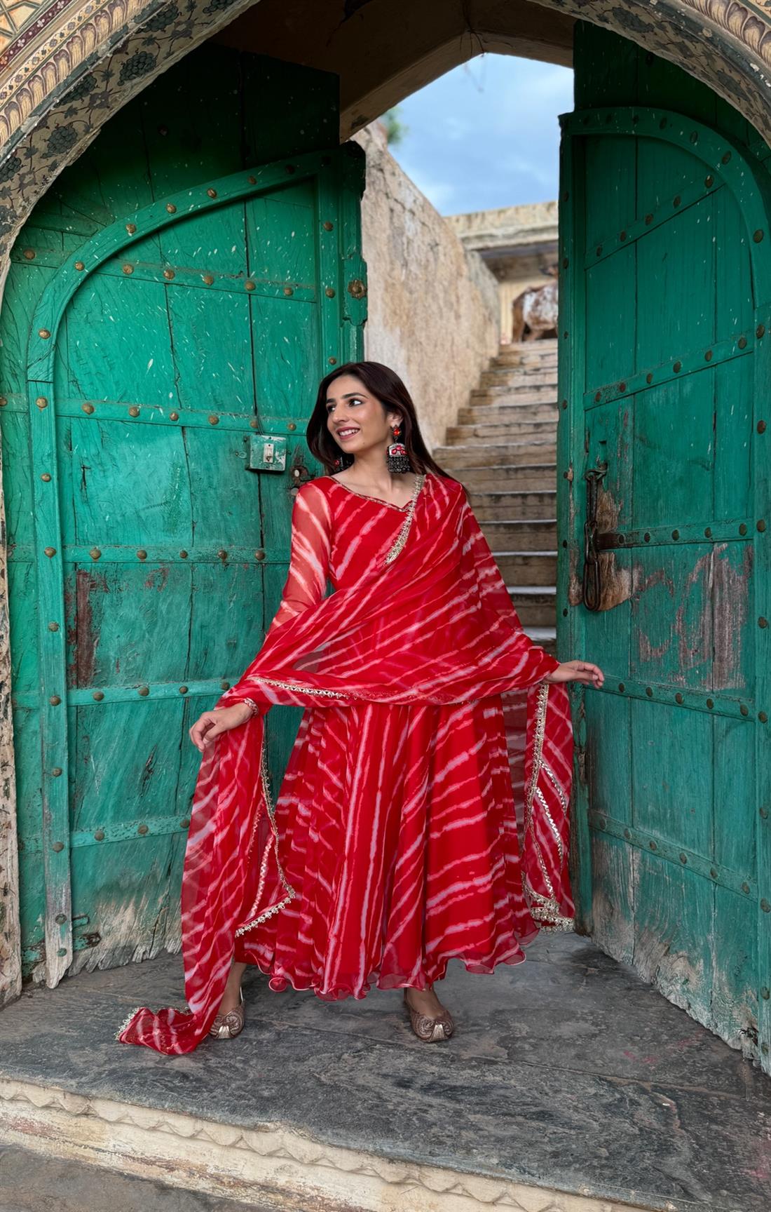 Sindoor Leheriya Pure Georgette printed Anarkali suit Set