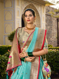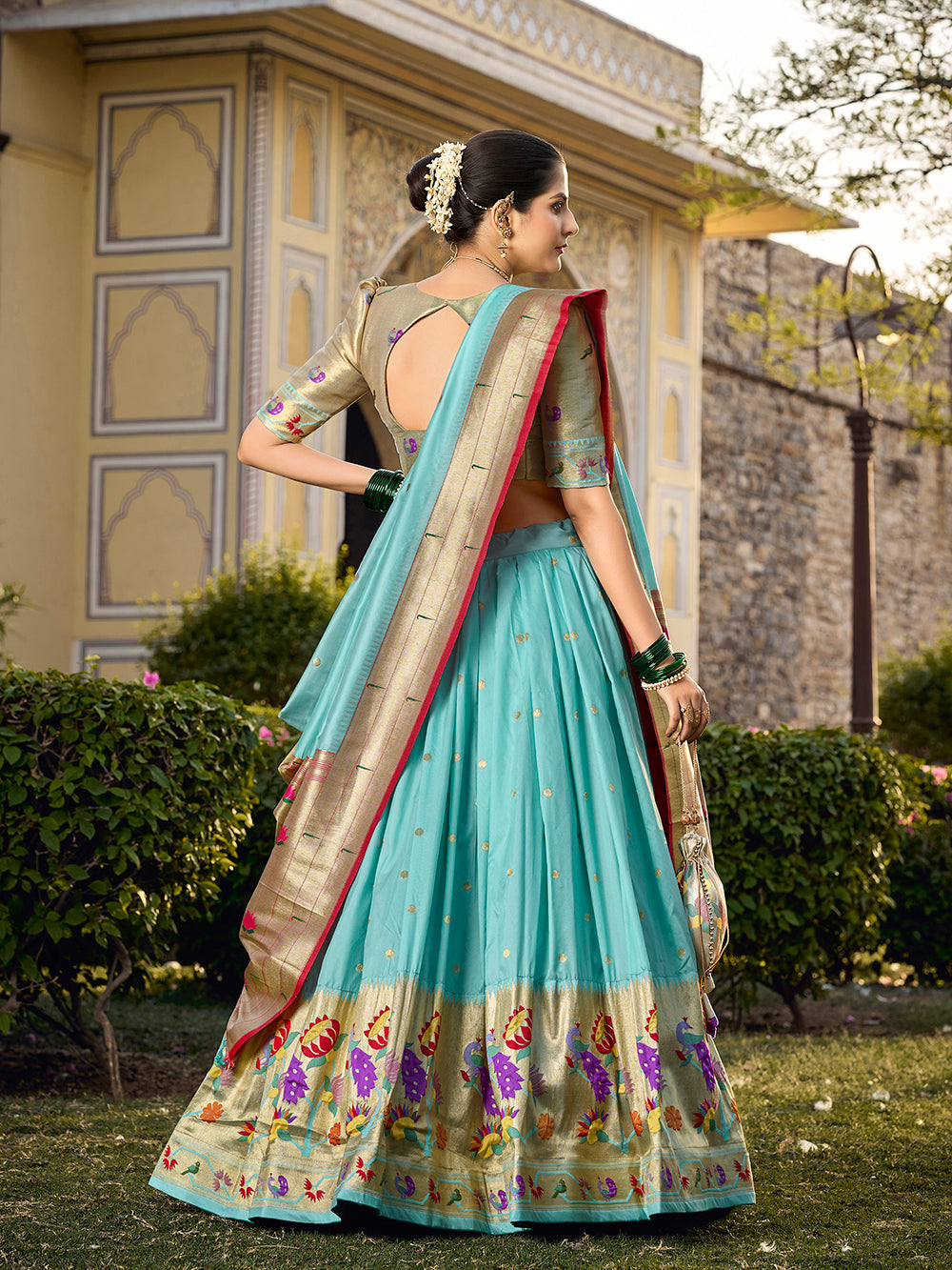 Sky Blue Color Jacquard Silk Paithani Weaving Zari Work Marathi Lehenga Choli