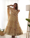 Soft Georgette Three Layer Ruffle Style Off-White Anarkali Suit Set