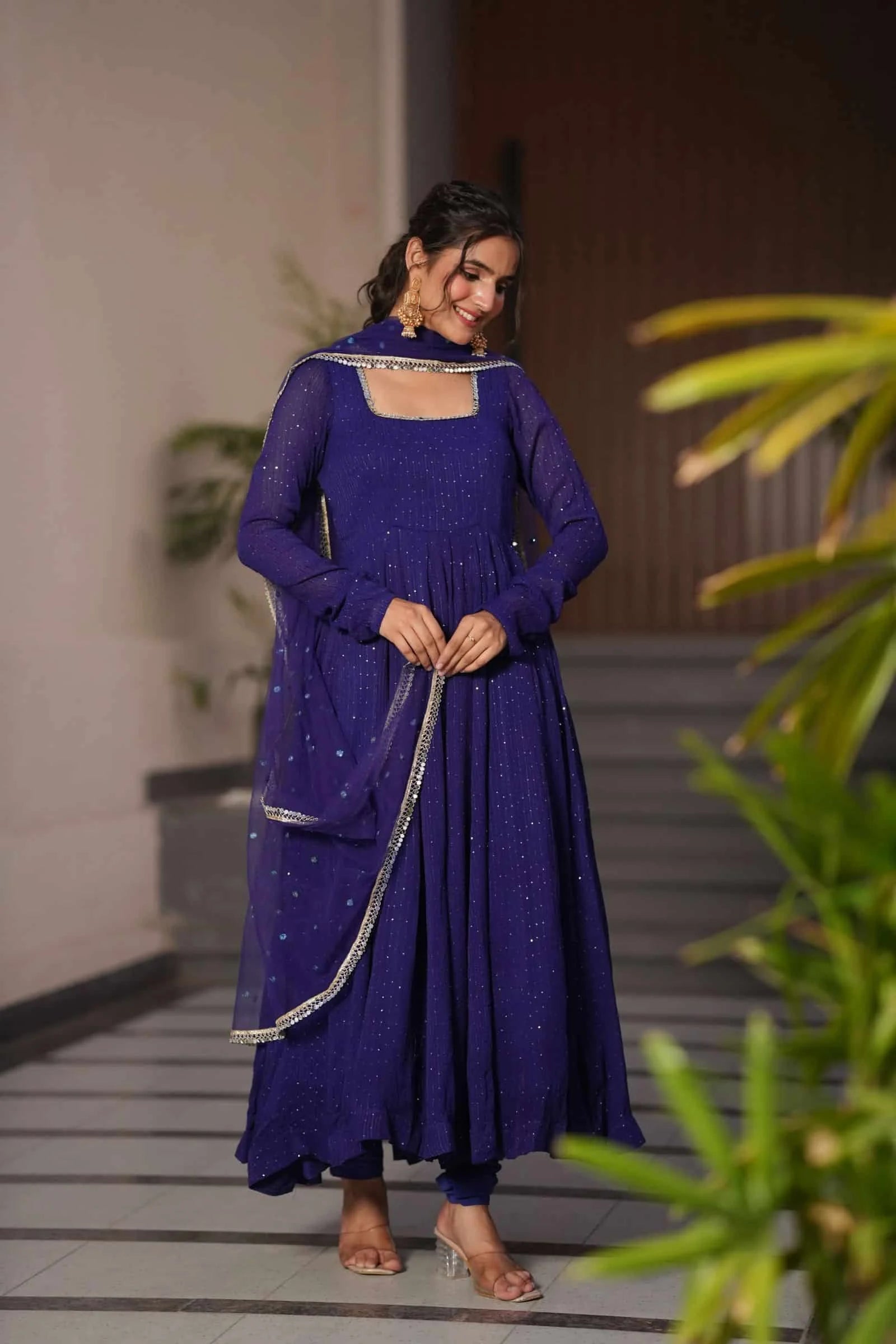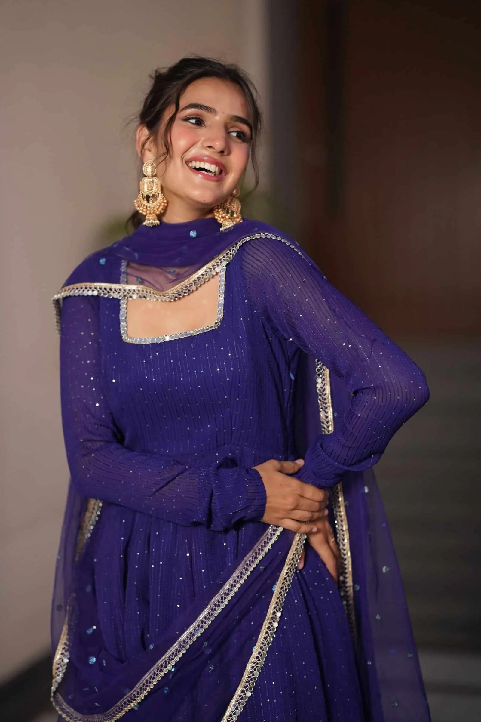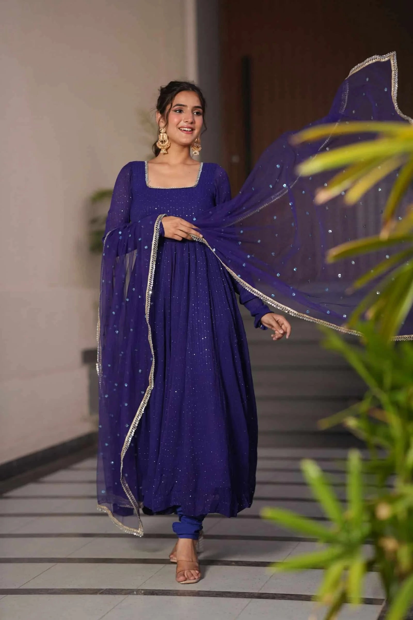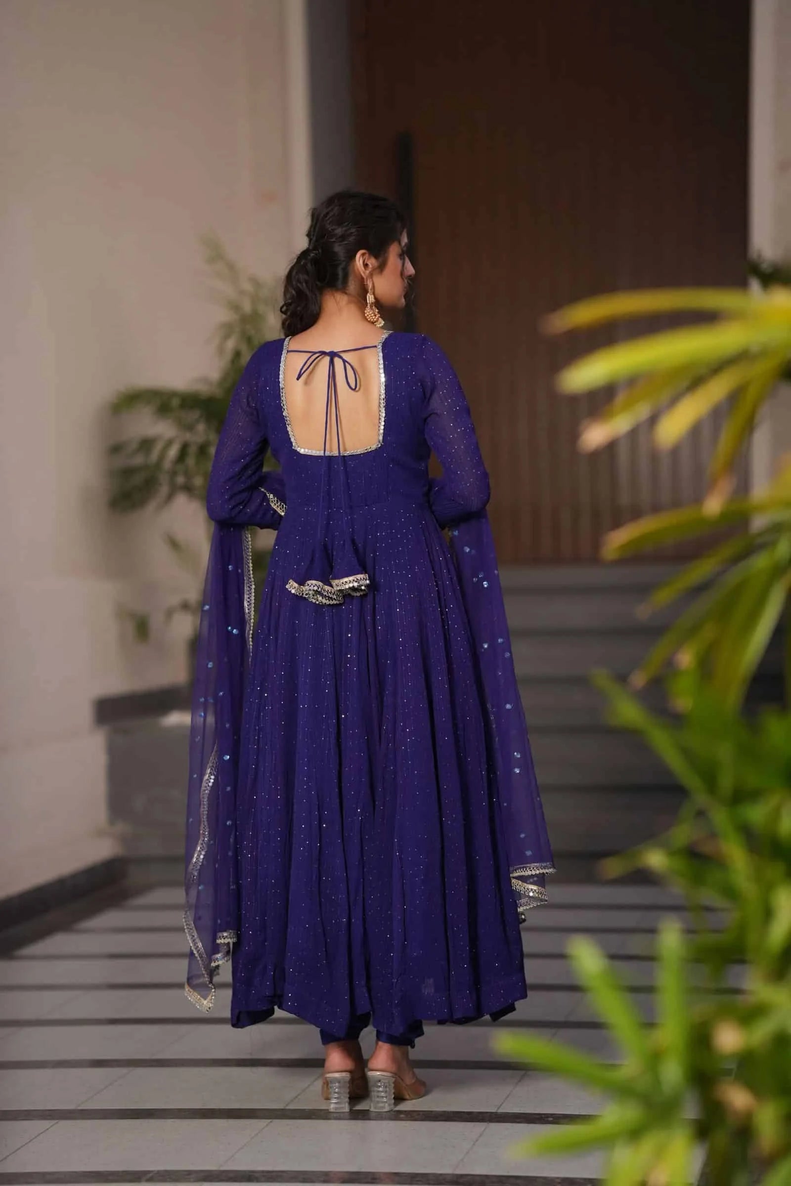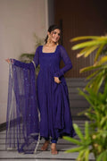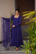 Starfall Blue Wedding Wear Anarkali Suit Set With Net Dupatta