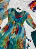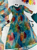 Stylish Aaliya Cut Teal Blue Handwork Kurti