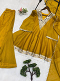 Swara Mustard Party Wear Real Mirror Work Palazzo Suit Set With Dupatta