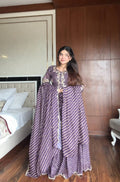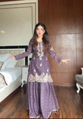 Vamika Elegance Purple Chinon Embroidery Work Sharara Suit With Dupatta