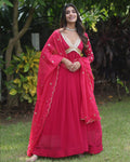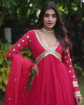 Wedding Wear Embroidered Rani Pink Alia Cut Gown With Dupatta