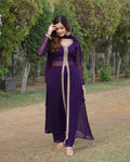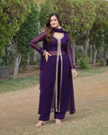 Western Designer Wine Color Georgette Three Piece Kurti Suit