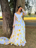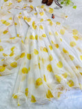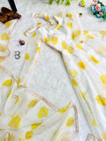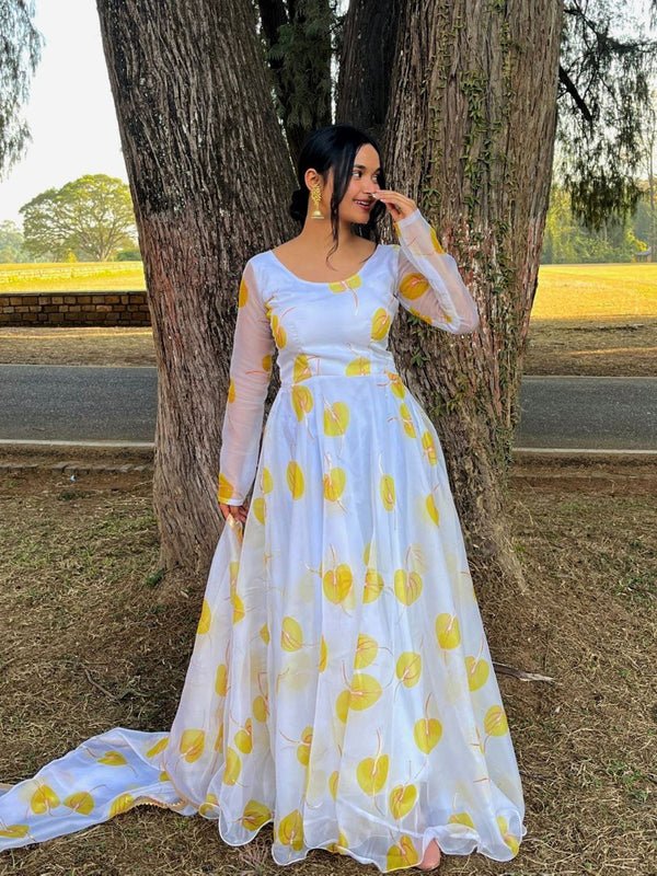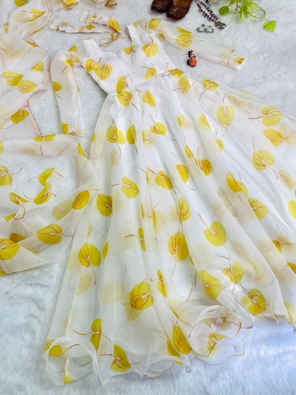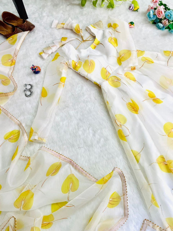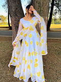 White & Yellow Printed Georgette Anarkali With Dupatta Collection
