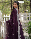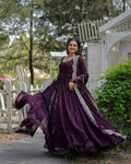 Wine Color Designer Embroidered Ethnic Gown With Dupatta