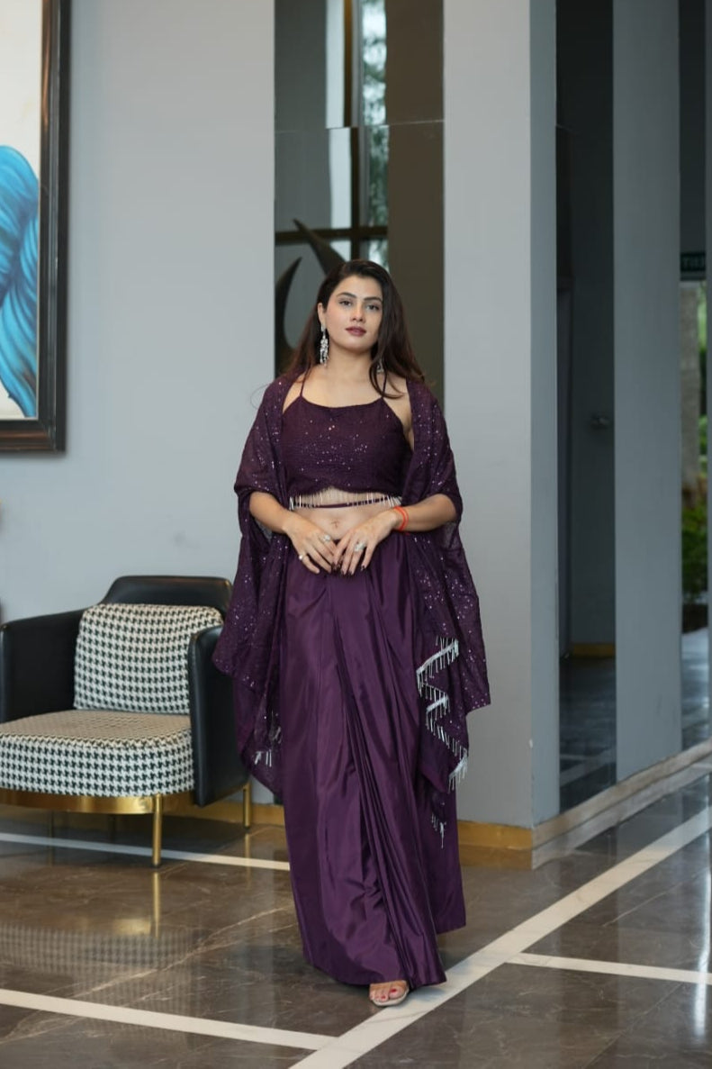 | DRAPED SKIRT : FIONA SILK WITH SEQUANCE EMBROIDERED WORK |