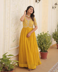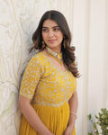 Yellow Color Faux Blooming Zari Sequence Embroidered Ethnic Gown